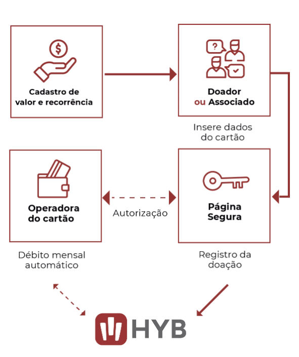 No HYB, a criação de doações recorrentes por cartão é simples e segura.