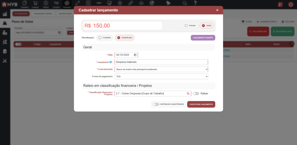 - Segmentar receitas e despesas por projeto e tipo e emitir relatórios.